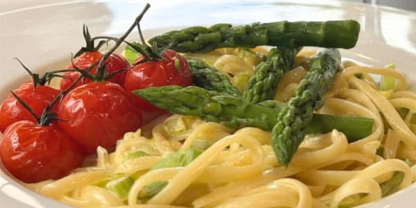 For something comforting yet still seasonal, the creamy vegetable and herb linguini delivers on flavour with asparagus, leeks, and fresh herbs in a rich, satisfying sauce – you won’t believe it’s vegan!
