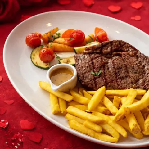 Enjoy the Valentine's Day Dinner special menu at Thomas Restaurant, featuring a 3-course dinner and a glass of wine.