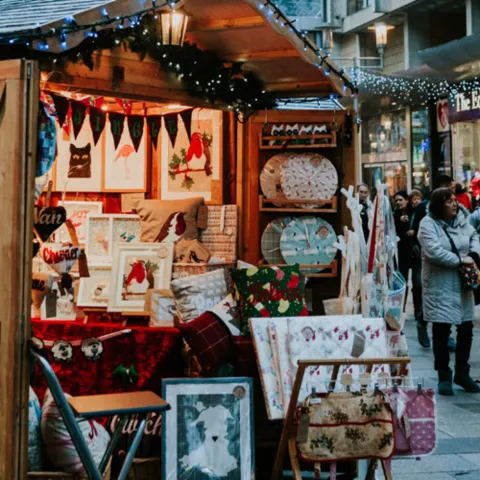 A huge range of craft stalls and food can be browsed throughout the day in Alpine-style huts. Found on St John Street, Working Street, Hills Street, Trinity Street and the Hayes, known as the Festive Quarter. Over 200 individual businesses sell a wide variety of diverse arts and crafts, plus seasonal food and drinks each year.